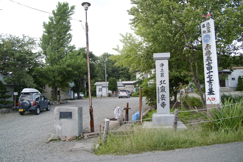 ここからが本題。北海道砂川市にある北泉岳寺。元々、このお寺の名称は「泉学寺」。初代住職が熱烈な赤穂浪士のファンであったことから、高輪の泉岳寺に「当寺で赤穂浪士の墓所を建てたい」と願い出たもの。もちろん速攻OKが出るはずもなく、2代目住職になってから、ついに再三再四の嘆願に根負けし、1953年(昭和28年)2月に承認が下りたのです。その際に、「北泉岳寺」と名乗ってもよい、という許可も出たことから、現在の名称に変わったのでした。北泉岳寺ではさっそく墓所の造営を開始。本家・泉岳寺にある四十七士の墓と同じ大きさ、形状の墓石とし、碑銘もしっかりコピーして彫られているという完璧さ。大石内蔵助の墓にのみ小屋が架かるという点も手抜かりない徹底ぶり。さらに、四十七士の墓の周囲から土を運び、北泉岳寺の墓にはその土を埋葬しています。